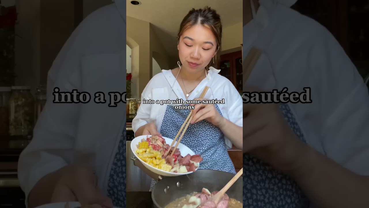 Strain the crawfish broth into the pan with the onion, then add the sausage and potatoes. Bring the broth to a simmer and cook for about 2 minutes, until thickened slightly.