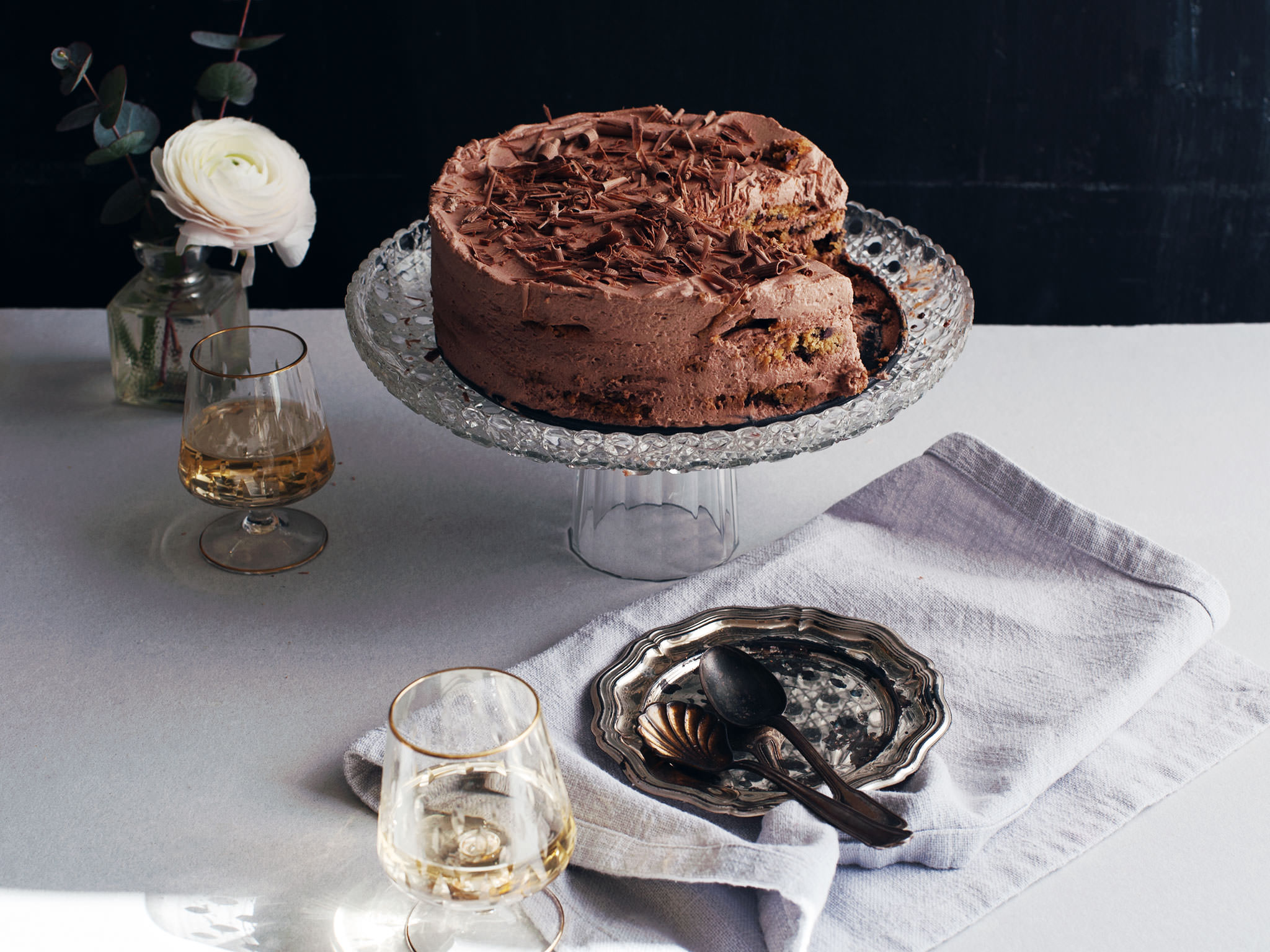 With its bitter notes, a freshly brewed espresso complements this cake well.