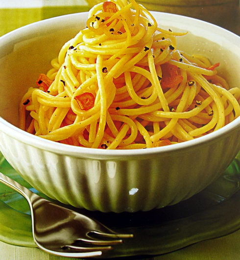 This is the dish to make when you get home and find there’s nothing to eat. If you keep spaghetti and olive oil in the store cupboard (pantry), and garlic and lemons in the vegetable rack, you can prepare this delicious meal in minutes. You can also add some freshly grated Parmesan cheese if you have some.