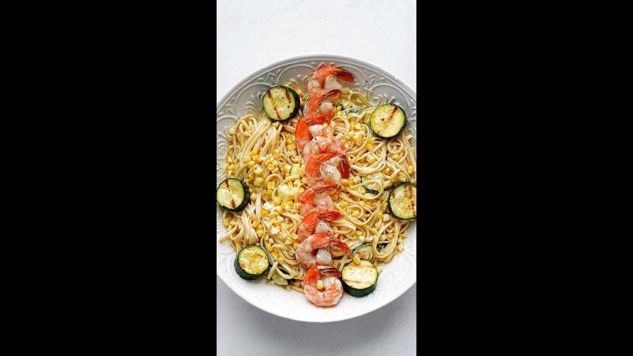Let’s make this Shrimp Whipped Ricotta Linguine with Zucchini and Corn with @CheatDayEats