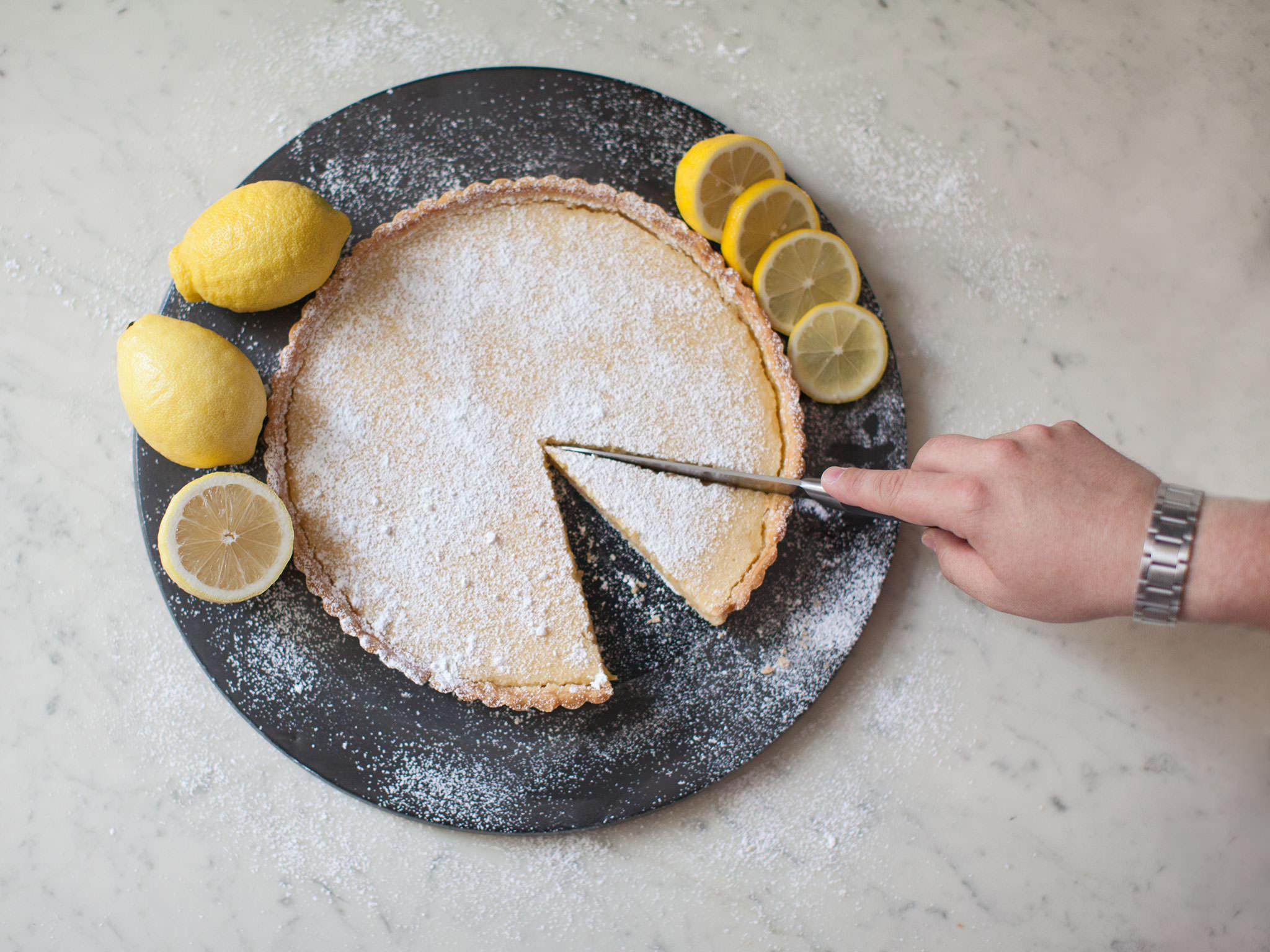 zester, citrus juicer, food processor, oven, plastic wrap, tart pan (with a removable bottom, if available), pie weights or dried beans, parchment paper, stand mixer or hand mixer with beaters, rolling pin