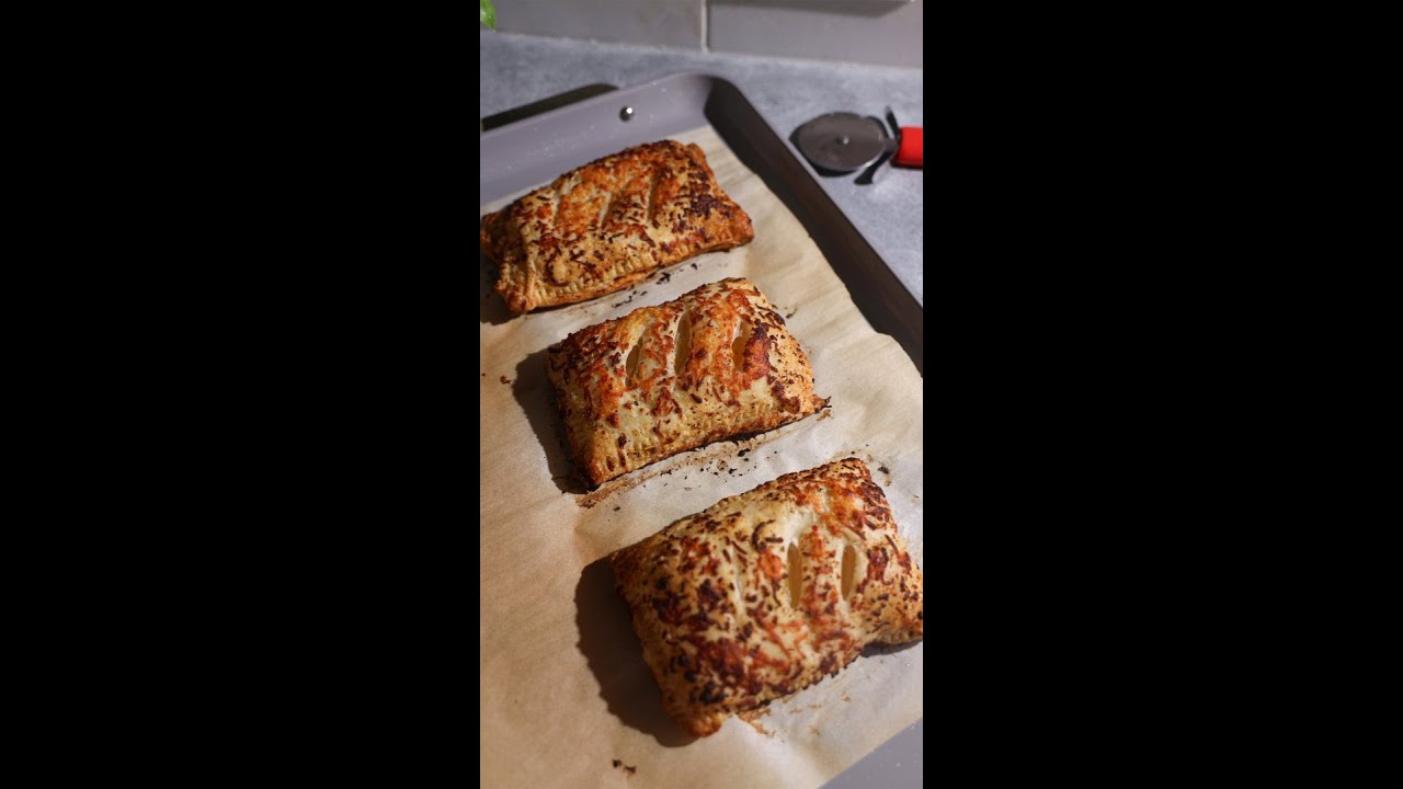 -Spread 1-2 tablespoons of marinara sauce over 2 pieces of puff pastry. Season with red pepper flakes and Italian seasoning. Layer the pepperoni and mozzarella over the sauce.