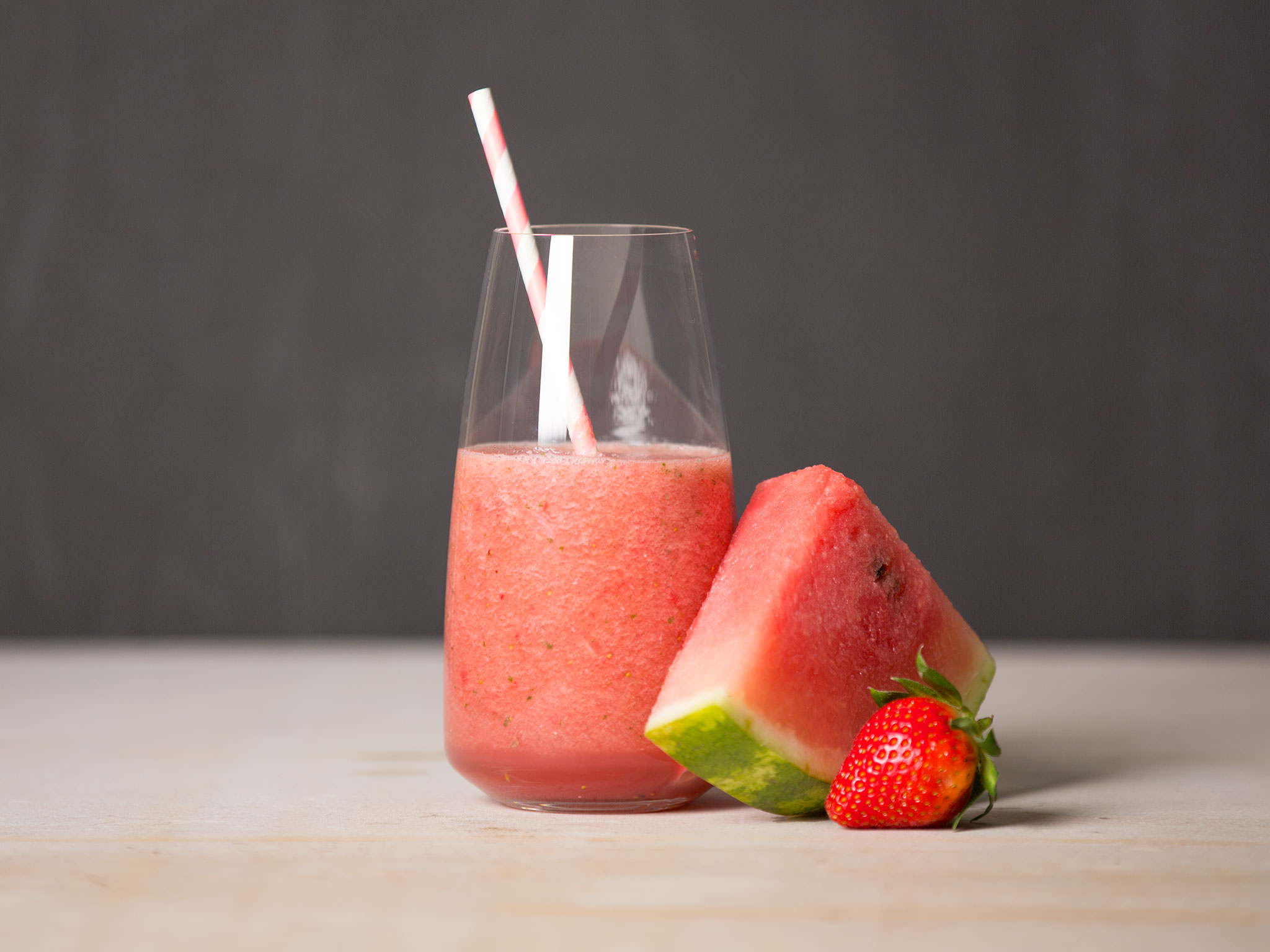 This smoothie with strawberry, watermelon, and mint is the perfect drink for a warm summer night. Its light texture and the great flavors make it truly refreshing.