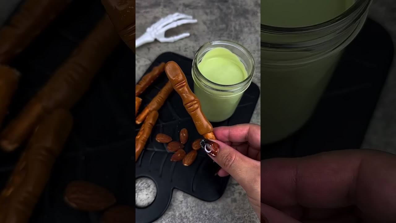 @beautyanddasweetz Hex-tra fancy witch fingers! No basic witches here. Wrap pretzels with soft caramel chews, shape, and dip in candy melts. Add almond fingernails, paint with chocolate, and add a touch of edible glitter. TastyTasty Channel