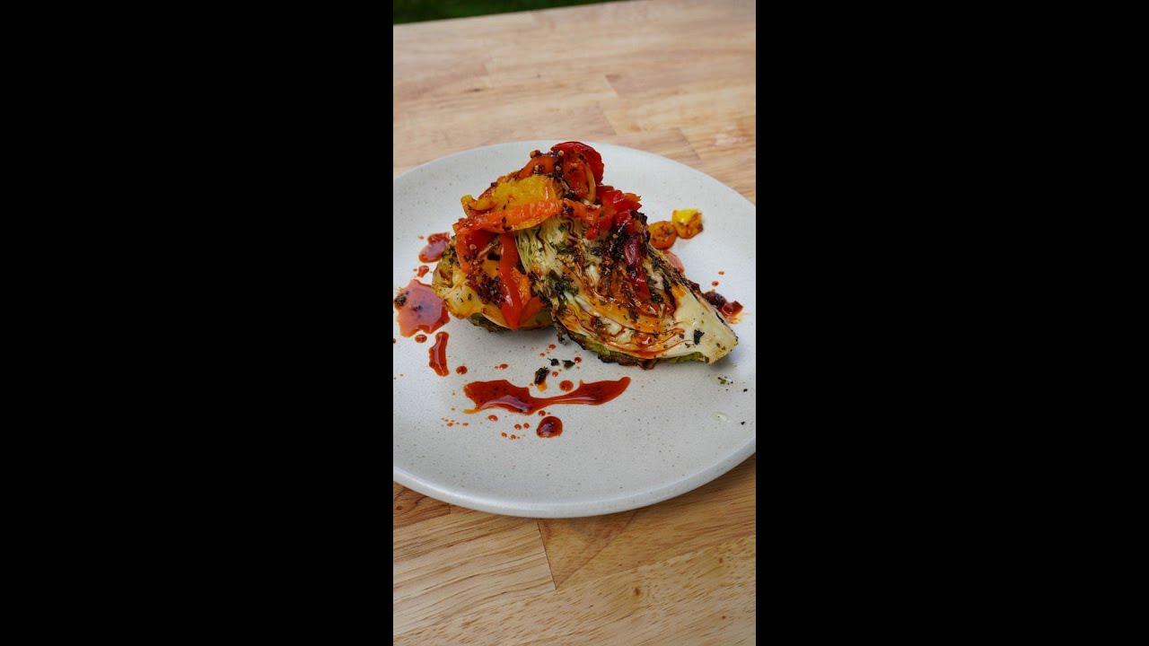 @tappedinwellness INGREDIENTS 1 small head of cabbage 4 tbs avocado oil 1 tsp salt 1 tsp pepper 1 tsp dried parsley 1 tsp dried basil 1 tsp lemon juice Pickled peppers + Chili oil to garnish TastyTasty Channel