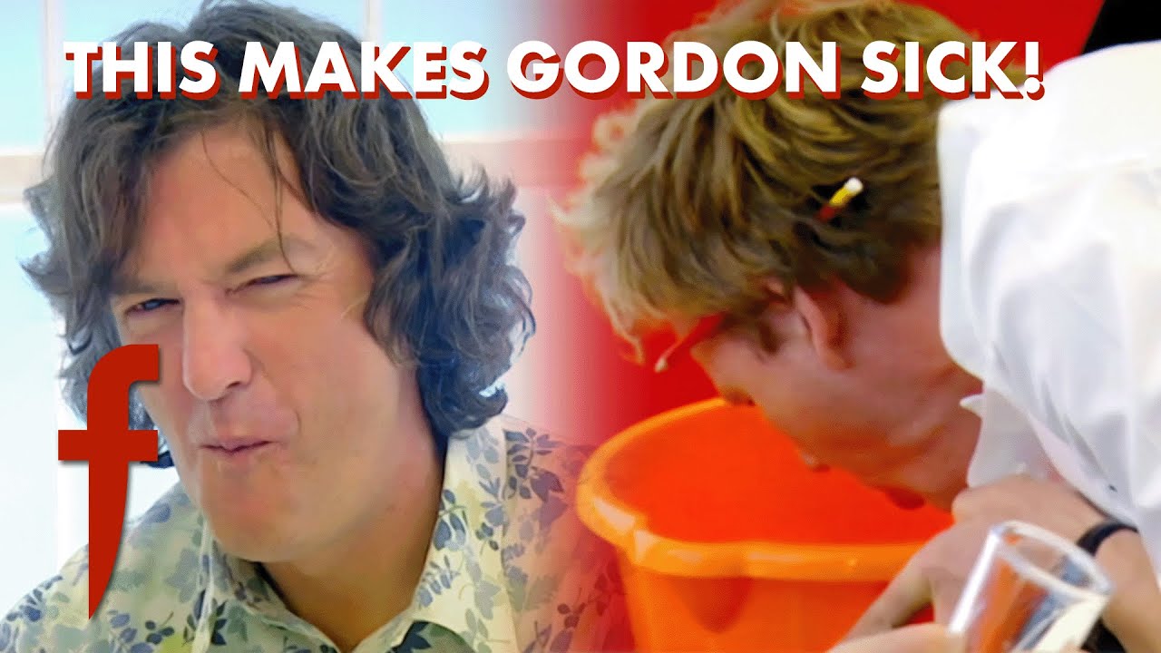 Gordon joins James May for a unique taste-testing experience, engaging in a “man-off” as they sample intriguing items like snake whiskey, bull’s penis, and finally rotten shark which makes Gordon vomit.