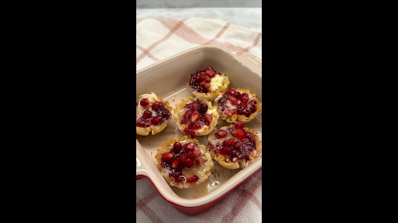 Place prosciutto into phyllo shells, then cover with a generous slice of brie. Top with a dollop of jam, sprinkle with dried thyme leaves, and bake at 350°F for 8-10 minutes. Finish with a few pomegranate seeds on each bite, and enjoy!