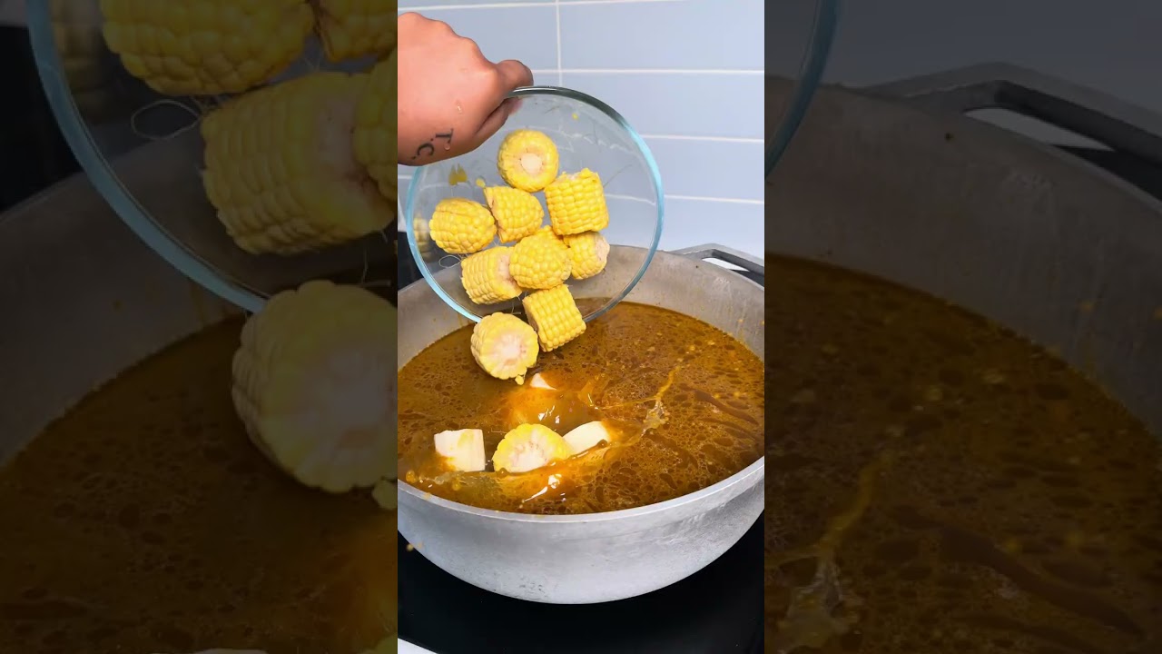 Because that takes longest to cook once the water has juice down and the meat is soft I add in more water corn planto and Yuka and then cilantro and kulantro I let that simmer for about another hour and then I’m going to add in potatoes corn and chicken and my key ingredient