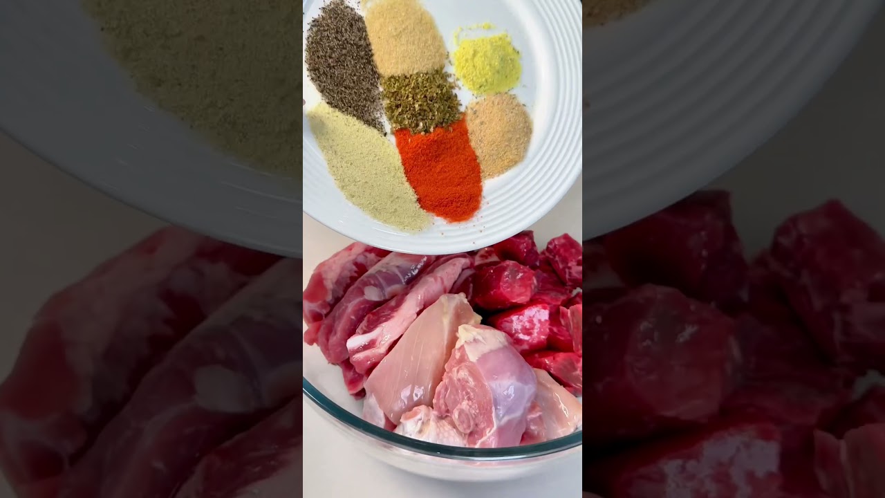 Them into 1 Edge cubes next I take my meat and then I’m going to go ahead and season it and give it a quick mix to a large pot I add in oil Sofrito tomato sauce and saon and then I’m going to go ahead and add in my pork and my beef