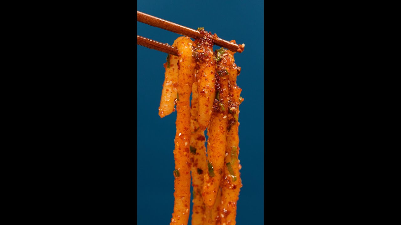 Surface the need until you get a smooth and stretchy dough shape the dough into a 4 in square then cut into thin strips roll the strips into the shape of a rope then cook in boiling salted water until noodles float and pear with a chili oil sauce