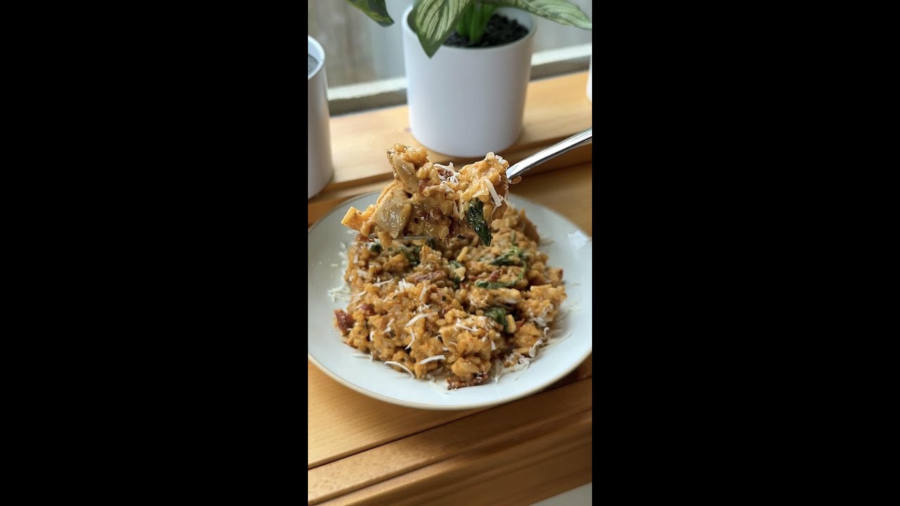 With a few stirs this 30 minute dinner takes the classic flavors of the viral maryi chicken and combines it with a creamy arboreo rice for a restaurant style risotto that will make you feel like you’re dining out