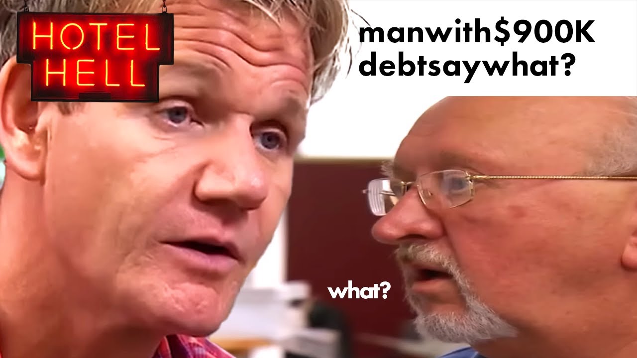 “calm down we’re just $900K in debt” ummm sir check yourself real quick thx | Hotel Hell