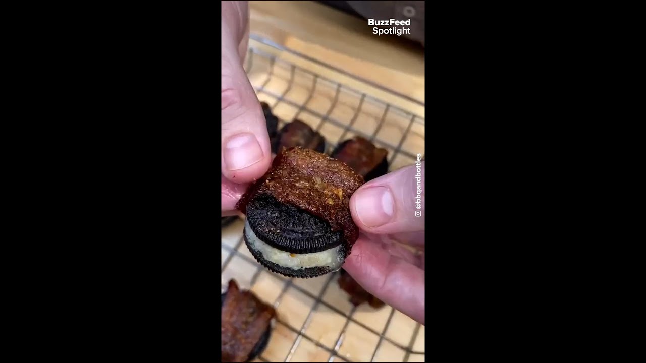 Today we’re going to be making bacon wrapped Oreos in the smoker with a touch of sea salt before you pass judgment on these just try them start with a package of Oreos and bacon take a single strip of bacon and wrap that around an Oreo to see how much
