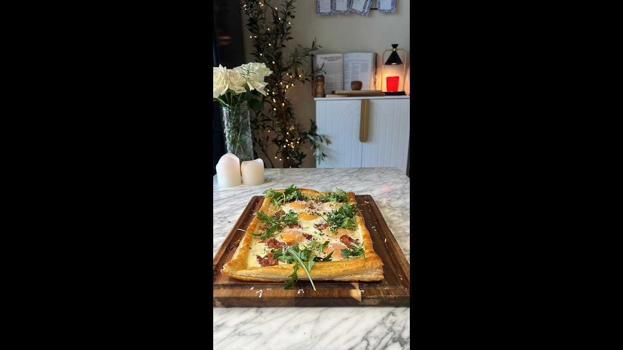 Let’s make a breakfast tart: light, fluffy, and delicious—a perfect addition to your next brunch. This tart was so delicious that it became a family favorite and disappeared within minutes. *cup of tea emoji* Here’s what you need to make this at home: Ingredients: 1 sheet of puff pastry 7 eggs, divided 1 tbsp of water 4 slices of bacon, cooked and crumbled 2 cups of arugula 1 bunch of chives, chopped 1 tbsp of crushed black pepper Shredded cheese of choice Instructions: Preheat the oven to 350°F (180°C). Roll out the puff pastry and use a sharp knife to score a large rectangle in the center. Once done, fork the rectangle to prevent it from rising. Next, beat together 1 egg and the water to make an egg wash. Brush egg wash around the edges and half-bake according to your puff pastry instructions. Once the puff pastry is half-baked, press down the middle with the back of a spoon to prevent the eggs from running, crack in the remaining 6 eggs, and sprinkle with the crumbled bacon. Bake in the preheated oven for 10 minutes, or until the eggs are to your liking. Lastly, top with the arugula, chives, crushed black pepper, and shredded cheese.
