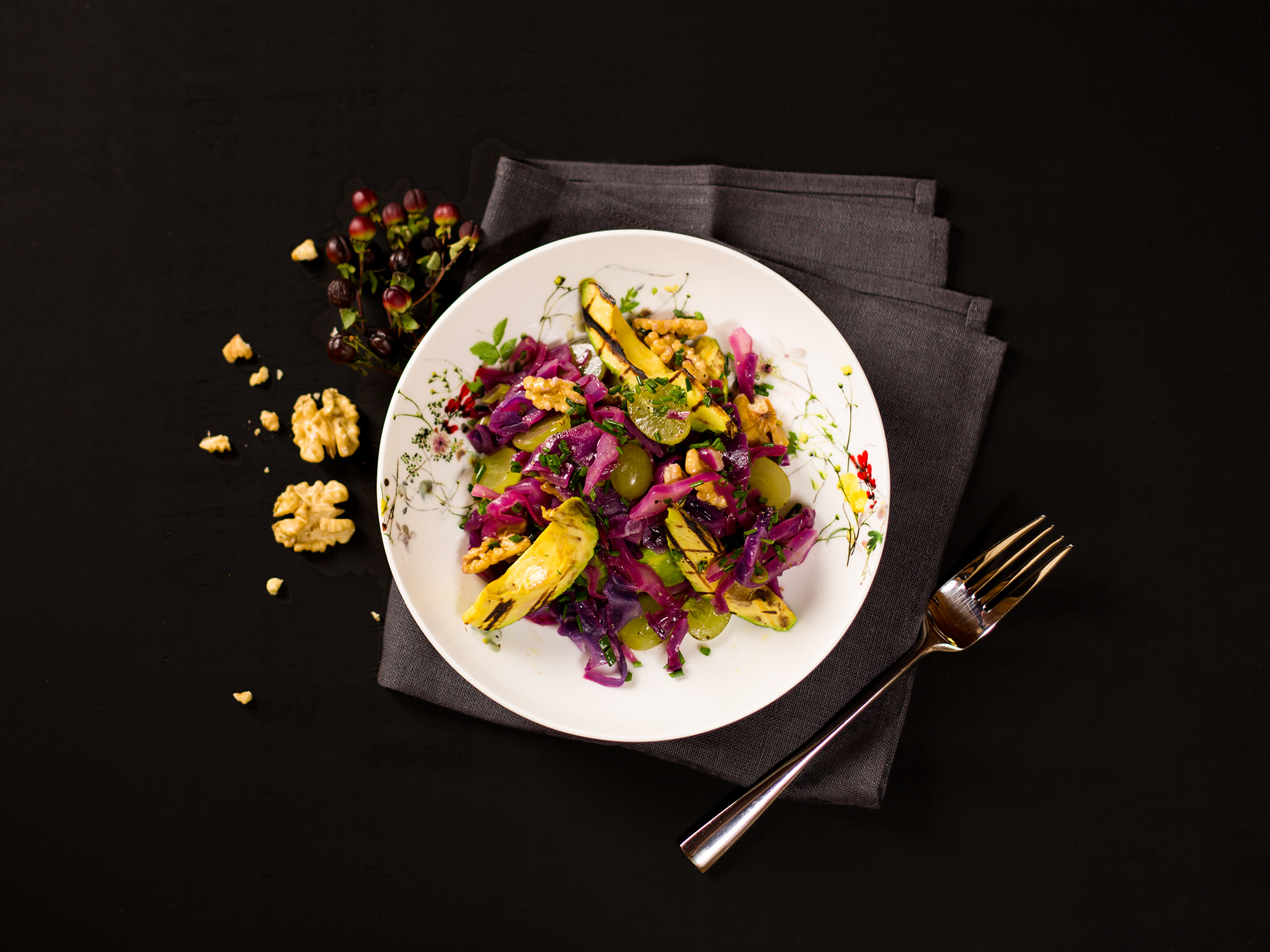150 g green grapes / 100 g walnuts / 1 red cabbage