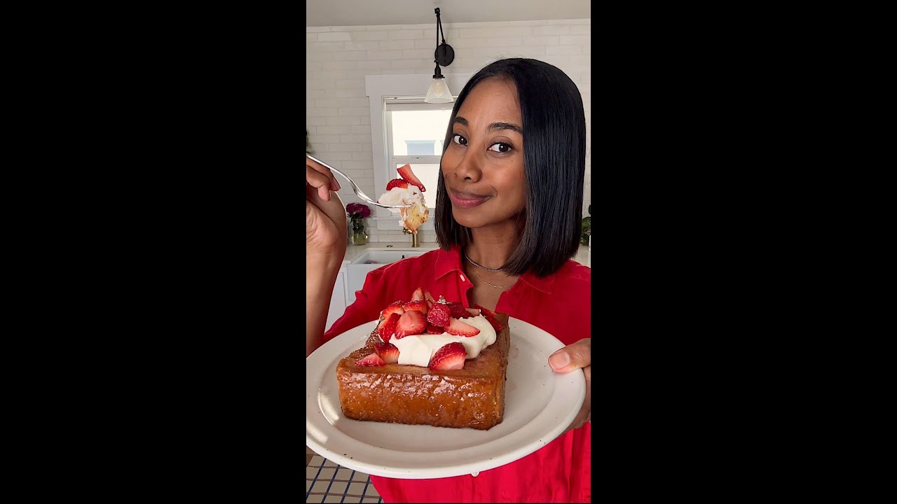 honey butter toast with rose whipped cream and strawberries is a delicious treat you can whip up for brunch or if in the mood for something sweet it starts with a sweetened honey butter mixture that’s spread a top all size of shok coupon toast yep even the bottom while that’s baking mercate berries in a bowl until they look like this halfway through baking flip the toast then make the sweetened Rose whipped cream we get all the feels and tastes of this by simply using rose water then whip until you get stiff peaks stack as you like and enjoy