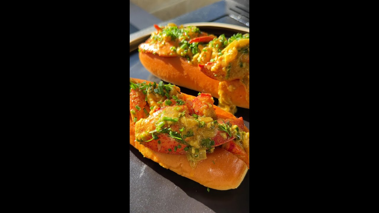 these are my Curry lobster rolls a spin on the classic and they’re so delicious these rolls are made with fresh Lobster meat a ice bath is going to stop the lobster from cooking then we’re going to remove the tail and craw meat and cut the tail meat into pieces blooming the curry powder and oil is really going to enhance the flavor of this sauce guys and the coconut milk is going to give it its creaminess next you want to turn the heat off before adding in your Lobster and go with some fresh chives dill and a squeeze of lemon juice just to really brighten it all up each bite is a perfect balance of savory spices and delicate Lobster these rows are great for a standout appetizer this summer
