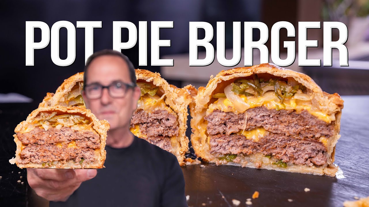 that’s so good I could shove it up my ass there’s no disagreeing that we’d like to make our Burgers on this channel but today we’re making one we didn’t see coming at the suggestion of one of the Sons of Sam Jordan though Zach is trying to take credit for it and by the way if you’re not watching my son’s own YouTube channel called the Sons of Sam you should because it’s very funny and filled with nonsense just like them come on Jordan come on Jordan Hot Cheetos Fried Chicken ow what we there I did it right I did it right so up anyway Jordan sent an Instagram post of them making basically what I think you could call a pot pie cheeseburger or cheeseburger pot pie and it looked fantastic and the second I saw it I was like I got to make it in fact he probably said dad you have to make this so we’re going to make it and I can’t wait I know it’s going to be delicious there is no bad that comes out of putting something in Pio there is no bad as the great guy Fury would say you could put a flipflop in that night eat it that’s some [ __ ] wisdom right there isn’t it I think it’s pretty simple think the key is we got to cook the burgers in advance cuz they’re not going to cook in the time it takes the pastry to get ready so we’ll do that and the whole thing just happens and blah blah blah blah blah let’s go Patty’s first that there is a half pound of 9010 I normally like 8020 I want the high fat content why because fat is Flavor Max thank you very much but I don’t want them to be too um what’s the word moist wet because they’re going in pastry so I just got half a pound of 910 I’m going to season it with just one thing and this is a Shameless plug for my friend Doug’s line of seasonings this is Doug’s dust and I’m addicted not in a bad way but look season it with whatever you want salt pepper garlic powder use our BFF but I just think a little barbecue esque profile will be nice for this so season this well what did you tell me right before this that you put that on cottage cheese I do it’s it’s yes I’m sorry I I sent Doug a picture of a bowl of cottage cheese my breakfast of late has been cottage cheese with his actually not this one this is his dust his allpurpose I’m telling you if you’re a cottage cheese fan it takes it in a whole new Savory Direction so tell us in the comments is that weird or is that not weird CU I think it’s a little bit weird I don’t think it’s weird after that promo for Doug now we’re just going to mix this and I just need two even patties two even I could have used a scale scale wouldn’t have been a terrible thing would it those look even now we need them like this here’s the container I’m building this in this guy so I want them a little wider than that because they’re you know they’re going to shrink a bit one and two and when these are both nice and even throw them on the flat top all right Patty’s on I’ve added a little oil to the top of each and on we go great and now for a little extra flavor inside put a little oil here and then some sliced yellow onion and some sliced jalapeno we’re staying with our flavor profile here Doug’s dust jalapenos and onions oh I don’t have the heat on in the middle all right let me just make change that we’ll go over here the Evo has two heat sources two burners one right there about couple inches from the outside and one in the middle I didn’t think about doing the peppers and the onions here uh so now I have no heat so there you go there’s your heat tiny bit more oil and now my goal will be to cook the patties to about uh 128 is because they’re going to go in the oven for half an hour so if I get them perfect here they will absolutely overcook and I don’t want that take your time and we’re adding cheese I don’t think I said that so be a cheeseburger onion jalapeno pot pie basically and before I flip these guys a little bit more oil and over we go great stuff great stuff the onions and jalapenos are where we want them so I’ll pull them off but not before giving them just a little salt and pepper and these two kids off to a rack I don’t want them sitting in liquid now we can get our pastry ready well unlike the restaurant in London Holborn that I’m certain makes pretty spectacular pastry for their pies I’m going store by a little flow flow down I don’t take any chances of anything sticking and we’ll roll this kit out for the base here’s what I need I need this in here I’m going to spray this first off camera so I don’t get it everywhere I need this thing coming out and looking beautiful I think this slightly larger will be good for filling up that bowl I’m going to just cut a little bit bigger than this guy I can always trim that’s pretty nice Circle there huh nice off you come off you come and now we fit I’m not a past guy all right so for anybody that might be sitting and laughing at me go ahead have at it what do I care okay this is good this is going to be fine I’m sure there’s a way to do this there’s going to be some geometric not geometrical what is it rulers and Compasses and graphs and charts to take a circle and get it into a thing and have it be right it’s not my bag barely graduated college remember I’m short those accounting credits what was my teacher’s name chance mrl yes you remember CH I don’t remember damn you mrff damn you Mr cluff all right this is good yeah this is perfect and the onions and peppers will go in first now this may not be the most elegant thing I’m doing but I’m concerned about moisture and while I really like the onions and the peppers I don’t want them see look wet inside you know moisture is not your friend in pastry cooking so let’s see if we can do this I’m going to put a little lirer on the bottom who eats raw dough anybody no I do oh I it so we take one put it here that’s great that’s tight and nice beautiful all right I’ve got two pieces of