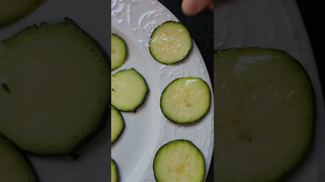 I don’t really like vegetables but I’m going to give zucchini chips a try I sliced up one zucchini using a mandolin to get it nice and thin then blotted it with a paper towel to absorb excess water then I tossed it in some olive oil and salt just covered it all over and arranged it on a large dinner plate I did this in two batches and I microwaved it for 5 and 1/2 minutes I also made a seasoning with garlic powder onion powder and some dill I sprinkled that on top put it all together and it’s actually pretty crunchy feeling let’s see how it tastes very good and has a little crunch I’d give it a six crunch Factor 10 flavor Factor