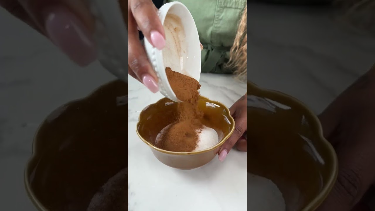 if you haven’t tried churo cheesecake then you are missing out because this is so flavorful it is such a treat and it’s super simple to make and I’m going to teach you guys how to do it so for your cheesecake mixture you’re going to take room temperature cream cheese sour cream and eggs along with sweet condensed milk you’re going to mix this together with the hand mixer and you’re going to beet until it’s nice and smooth I love to add in some vanilla here as well for your cinnamon sugar you’re just going to add cinnamon and sugar and mix that up next you’re going to take a 13×9 pan and you’re going to spray it down before adding in a layer of your cinnamon sugar the key ingredient to this recipe is going to be Crescent dough so you’ll put a layer of crescent roll down and then you’re going to add that delicious cheesecake batter and then you’ll finish with a layer of Crescent dough and you’re going to top with some cinnamon sugar I like to spray this as well and then I’m going to bake it in the oven I’m then going to add some murated strawberries on Top This is just going to give it that extra va boom the full recipes on my blog try this out and good luck