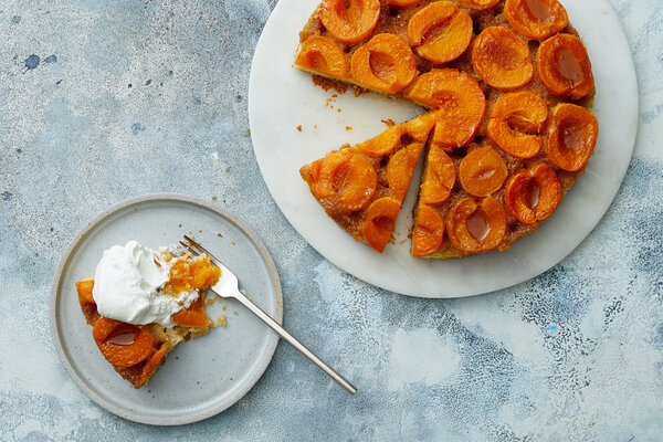 - Spread the batter in an even layer over the apricot halves. Bake until the cake is set and doesn’t jiggle when shaken, is golden brown on top, and a toothpick inserted into the center comes out clean, about 35 minutes.