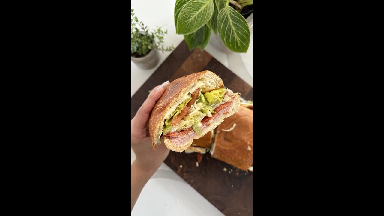 ▪️1 Loaf Italian or French Bread▪️12 oz. Sliced Deli Ham▪️4 oz. Turkey Pepperoni▪️8 Slices Provolone Cheese▪️1/2 Head Iceberg Lettuce, sliced thin▪️10 Pepperoncini Peppers, stems removed▪️2 Tomatoes, sliced▪️Light Italian Dressing▪️Salt & Pepper▪️