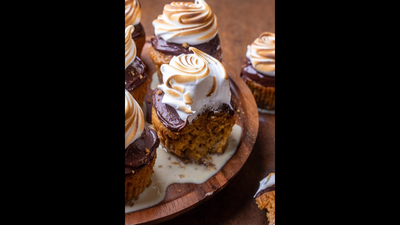 Fall is here, and these Pumpkin S’mores Tres Leches Cupcakes will give you all the cozy autumn vibes! Delicious and easy to make, this recipe will become a seasonal favorite you’ll want to recreate again and again! @sweetmelibakery Ingredients: Crust: 1 1/4 cups gingersnap crumbs 5 Tbsp melted unsalted butter 1 Tbsp granulated sugar Pumpkin Cupcake: 6 Tbsp melted unsalted butter 3/4 cup granulated sugar 3/4 cup canned pumpkin puree 1/4 cup packed light brown sugar 2 large eggs 1/2 Tbsp vanilla extract 1 cup + 1 tbsp all-purpose flour 1 tsp baking powder 1/4 tsp baking soda 1 tsp cinnamon 1 tsp pumpkin spice 1/4 tsp salt Milk Blend: 1 can (14oz) condensed milk 1 1/2 cups milk 1 cup evaporated milk 1/4 tsp vanilla extract 1/8 tsp cinnamon Chocolate Ganache: 1/2 cup dark chocolate chips 1/3 cup heavy whipping cream Meringue: 3 large egg whites 3/4 cup granulated sugar 1/2 tsp cream of tartar 1/2 tsp vanilla Instructions: Gingersnap Crust: Mix gingersnap crumbs, melted butter, and sugar. Press into cupcake liners. Pumpkin Cupcake: Combine melted butter, granulated sugar, pumpkin puree, brown sugar, eggs, and vanilla. Mix in flour, baking powder, baking soda, cinnamon, pumpkin spice, and salt. Mix until evenly combined then pour batter into the cupcake pan. Bake at 350°F for 17-20 mins, until a toothpick inserted in the center comes out clean. Let cool completely. Milk Blend: In a large bowl, whisk together the condensed milk, regular milk, evaporated milk, vanilla, and cinnamon. Use a piping tip to remove a small center of the cooled cupcake. Pour the milk blend into the center of each cupcake. Repeat a few times until all the milk is used. Chill in the fridge for 2-3 hours. Chocolate Ganache: Heat dark chocolate chips with heavy cream until melted and smooth. Let cool. Meringue: In a heatproof bowl, whisk together egg whites and sugar over a pot of simmering water, ensuring the bottom of the bowl does not touch the water. Continue whisking until the sugar completely dissolves and the mixture is warm to the touch, about 3-4 minutes. Remove from heat and transfer to a stand mixer fitted with the whisk attachment. Beat the mixture on medium-high speed until it forms stiff, glossy peaks, approximately 5-7 minutes. As the mixture begins to thicken, gradually add cream of tartar and vanilla extract. . Transfer the prepared meringue to a piping bag fitted with a star tip. Decorate the cupcakes: Spread a generous layer of ganache over the cooled cupcakes. Pipe decorative swirls onto each cupcake. Using a kitchen torch, gently toast the meringue until it achieves a perfect golden-brown color. Place the cupcakes in the refrigerator to set, allowing the flavors to meld and the textures to firm up. Enjoy these delightful autumn treats within 5 days for the best taste and freshness.
