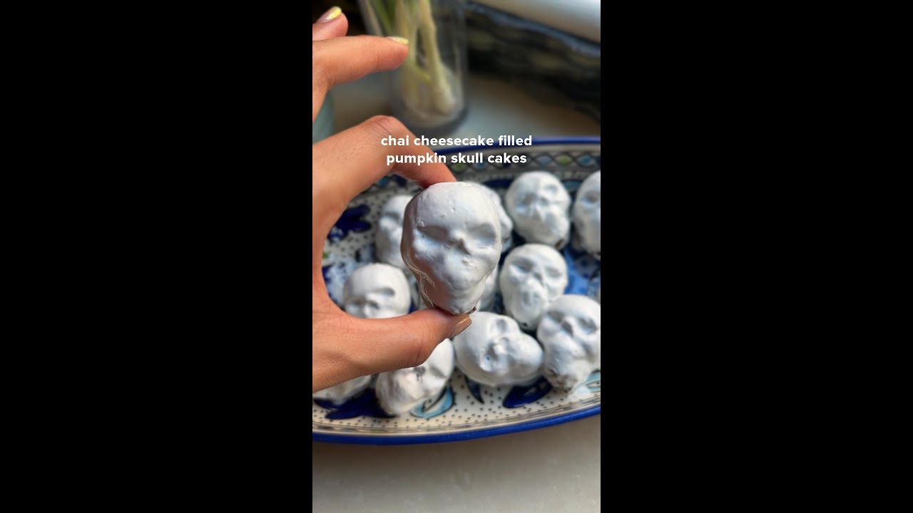 Spooky season is officially here! And these pumpkin stuffed chai cookies are the perfect way to celebrate. You can find the recipe linked in our bio! @joelleolol Sponsored by Signature SELECT. #SignatureSELECTPartner https://tasty.co/recipe/chai-cheesecake-stuffed-pumpkin-skull-cakes