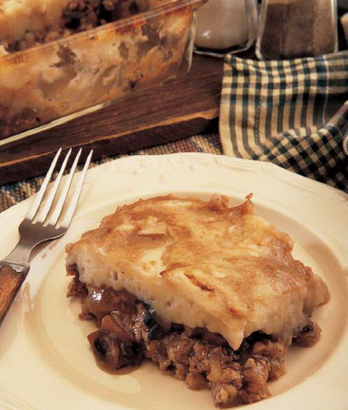 5. Spread meat mixture in a deep pie dish. Spread mashed potatoes evenly over meat mixture and swirl with a fork to create an attractive pattern.