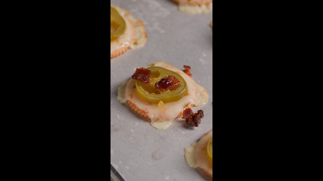 Once you start eating them it’ll be hard to stop. All you need is… Crackers Pepper Jack Cheese Pickled Jalapeños Candied Bacon TastyTasty Channel