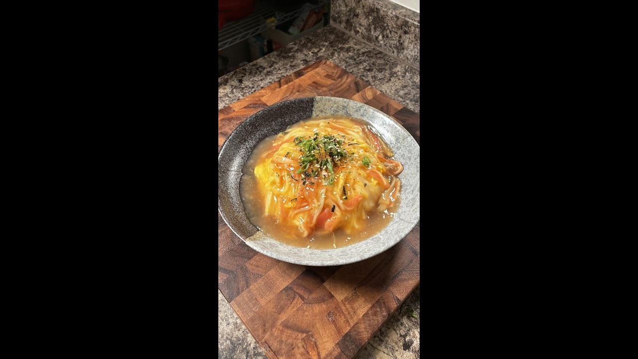 Tenshindon or Japanese Crab Omelet — fluffy eggs wrapped around savory crab, topped with a drizzle of sweet soy glaze and a sprinkle of scallions @groovyfoodiess https://tasty.co/recipe/japanese-crab-omelette