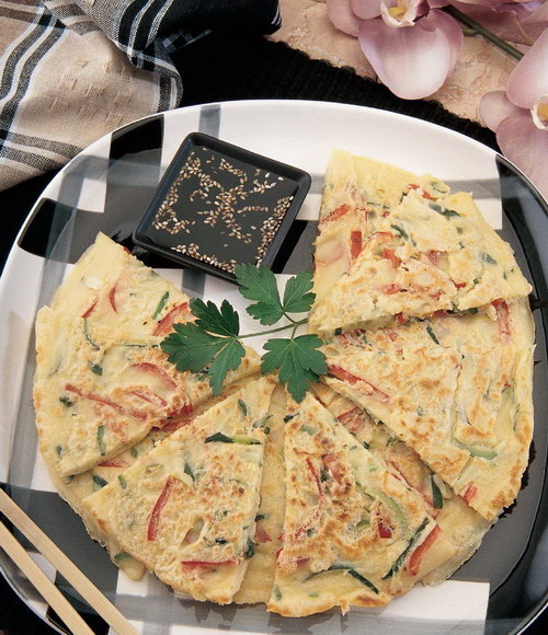 6. Repeat with second half of batter. Cut each pancake into 8 pieces. Serve with quick dipping sauce.*