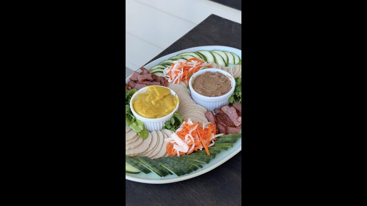 A Vietnamese twist on your favorite snack board — savory meats, pickled veggies, crusty baguettes, and bold flavors in every bite. Bánh mì, but make it charcuterie! @groovyfoodiess Recipe link above!