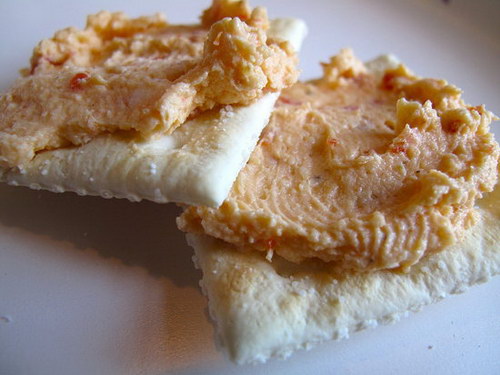 Say Cheese! I am not from the South, so before this week, I had never tasted the comforting spread native to the region that’s known as pimento cheese. However, I was eager to experience this seemingly exotic food, so I decided to make it. Pimento cheese isn’t a type of cheese, but rather, a seasoned cheese mixture. The main ingredients are sharp cheddar cheese, jarred pimentos (a type of sweet succulent aromatic red pepper), and mayonnaise. The history of pimento cheese is fairly unknown, although it appeared in grocery stores and home kitchens somewhere in the early 1900s. It’s delicious simplicity made it a hit during the Depression, and since then, pimento cheese has remained popular in the South. The tasty spread can be enjoyed on crackers, celery or other veggies, toast, or plain, old crustless white bread.