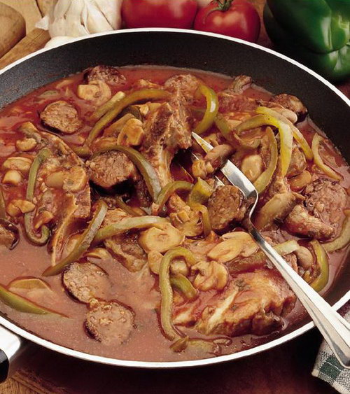 Spicy sausage can add a bit of zip to Italian-style pork chops.