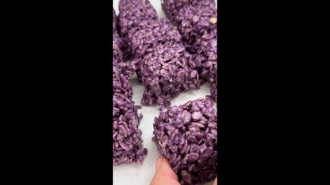 Ube Rice Krispies Treats by @katlieu Ingredients 6 tbsps unsalted butter 1 to 2 tablespoons ube halaya (jam) 1 teaspoon ube extract for the color (add more as needed) 1/2 teaspoon miso, for a balancing salinity (a pinch of salt would do too) One (12-ounce bag) mini or regular-sized marshmallows 6 cups Rice Krispies cereal 1. Grease or butter an 8 x 8 or 9 x 9-inch baking dish. 2. Brown the butter over medium heat in a heavy saucepan or pot. This takes about 5 minutes. Once brown bits form and the butter is a little foamy, lower the heat to low and mix in the ube halaya and extract until smooth. The mixture will be bubbly and foamy. 3. Mix in the miso or salt. Add the marshmallows and stir with a rubber spatula until they melt together into a big fluff. Turn off the heat and mix in the cereal, a cup at a time. You want the marshmallows to coat all of the cereal fully. 4. Transfer to the prepared baking dish and press down into a level layer using the back of the spatula or a fondant press/smoother. 5. Allow to cool for 15 minutes before flipping out onto a cutting board. You may need to run the back of a butter knife along the edges to help the block of treats come out of the baking dish. Cut into 12 to 16 even bars and enjoy. 6. Optionally, toast the top with a blowtorch for a s’mores effect.