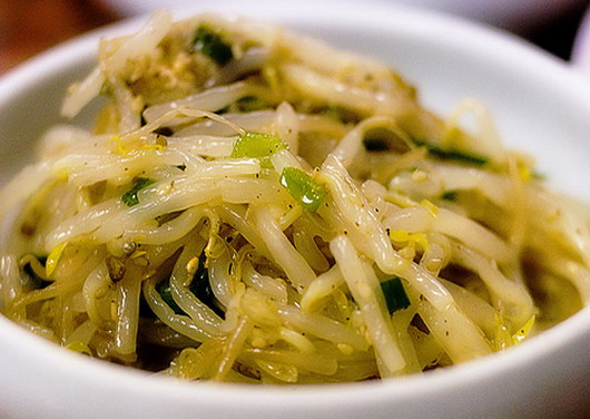 *Soybean sprouts, which have a stronger taste and smell than the sprouts from the mung bean, can be used in this recipe if they are cooked a minute or two longer.