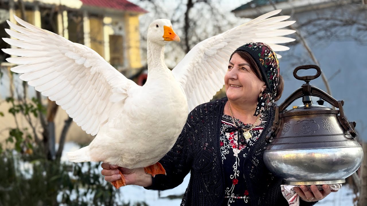 Grandma Cooks Juicy Goose in an Afghan Cauldron! The Most Tender Meat Ever!