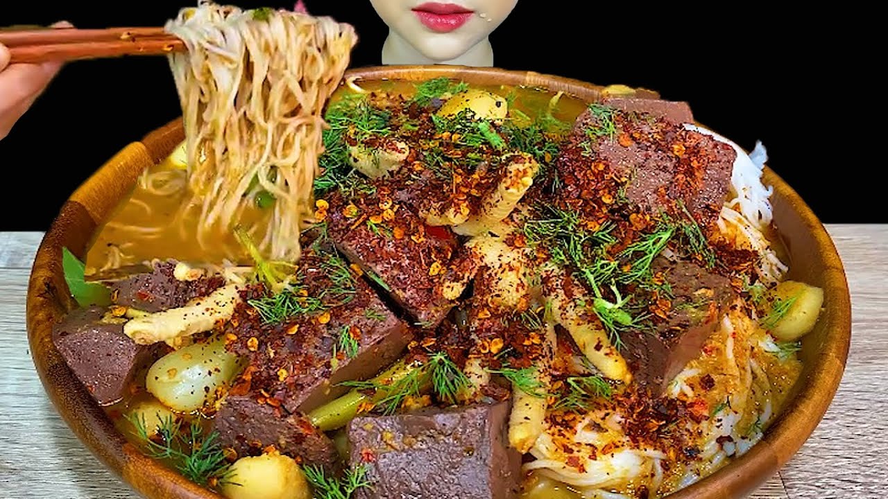 Eating Spicy Thai Food||Spicy Rice Noodles & Fish Soup, Chicken Feet
