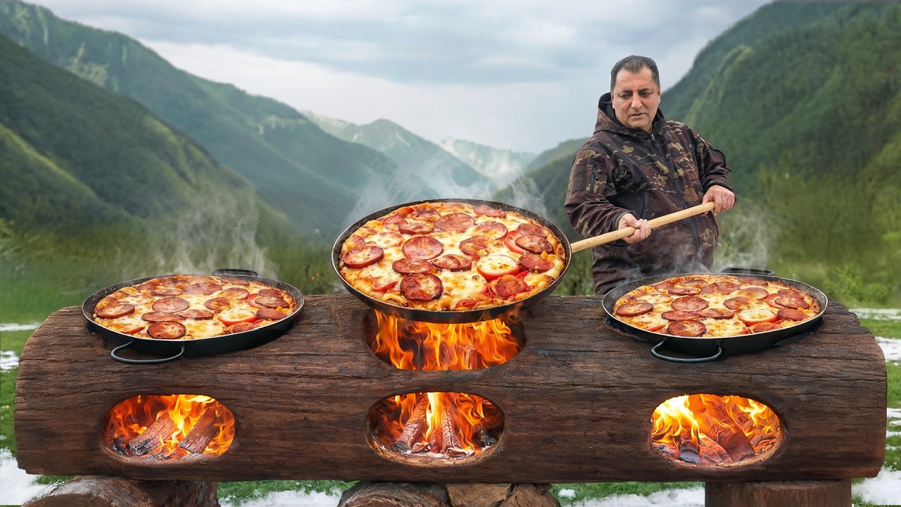 I Cooked 3 Delicious Village Pizza In A One Big Log Grill!