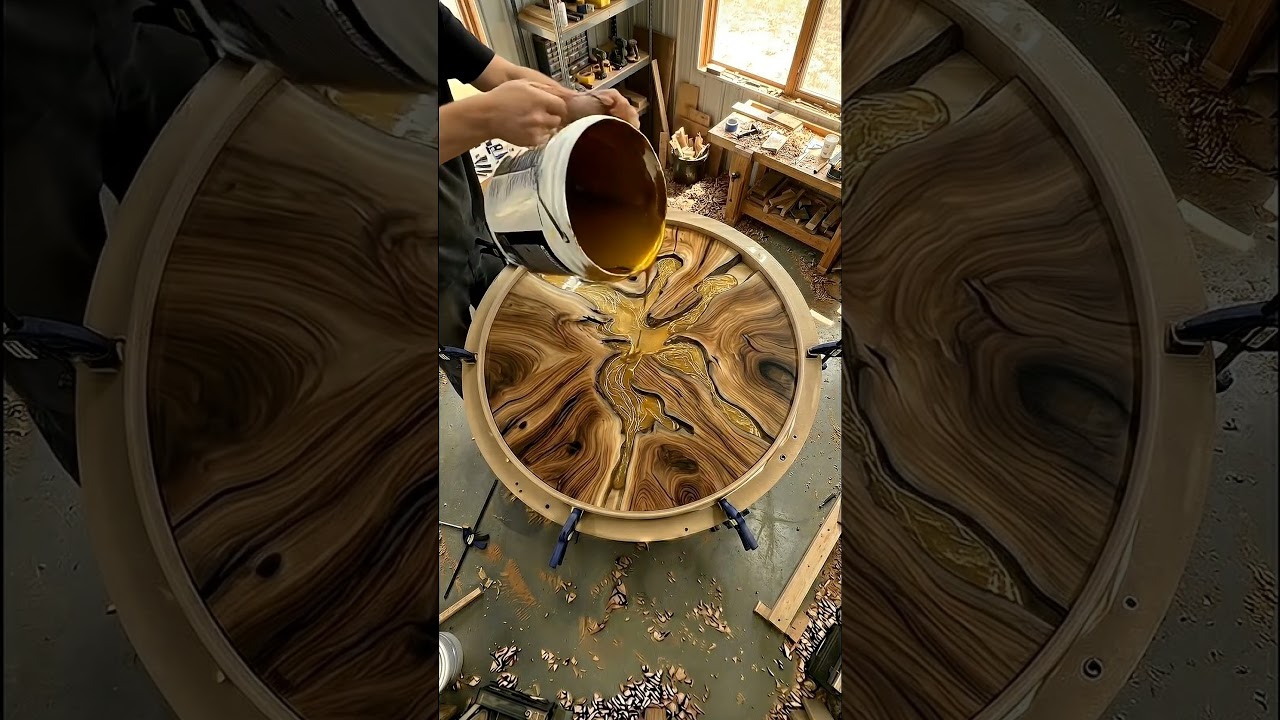 Watch the step-by-step process of creating a custom circular dining table. We start with unique wood slabs, secure them in a mold, and pour a beautiful golden-tinted resin to fill the gaps. After some intensive sanding and polishing, the result is a high-gloss, luxury masterpiece fit for any home.