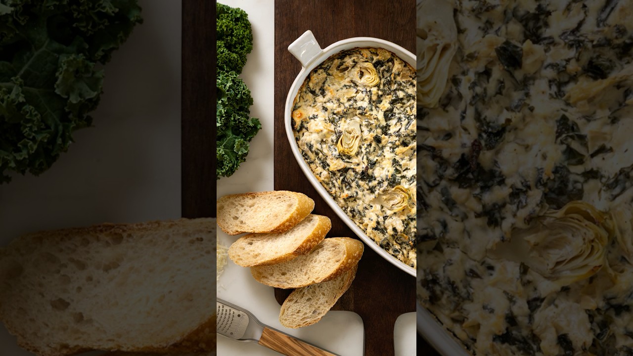 #GameDayDip #KaleArtichokeDip #EasyPartyRecipes #BakedDipRecipes #FoodieShorts