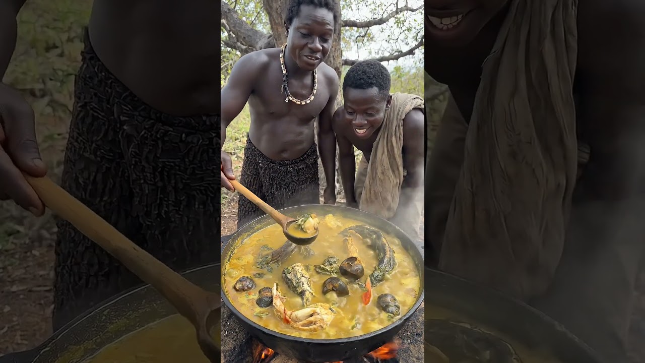 Hadzabe Cooking and Eating Together by the Fire #Hadzabe #TribalLife #WildFood#Cooking #shorts #food