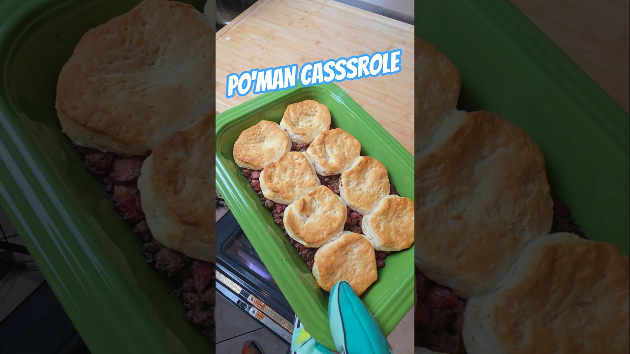 Id have to put some chopped onion, chopped green pepper, and chopped carrots in when the ground beef is cooking. Then Id put a layer of shredded cheese before adding the biscuits. Then use melted butter on those biscuits as soon as the casserole comes out of the oven.