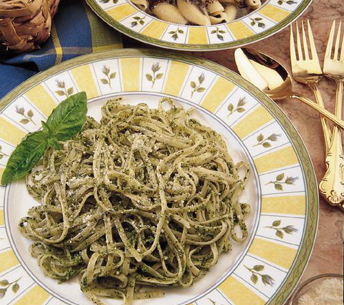 3. In a large serving bowl, combine pesto and linguine, toss well, and serve.