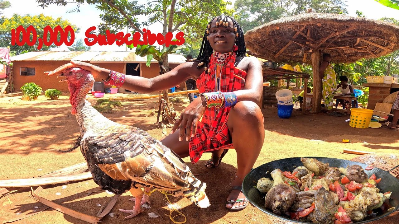 Cooking Whole Turkey ๐ | 100,000 Subscribers | African Village Cooking with Family and Neighbours