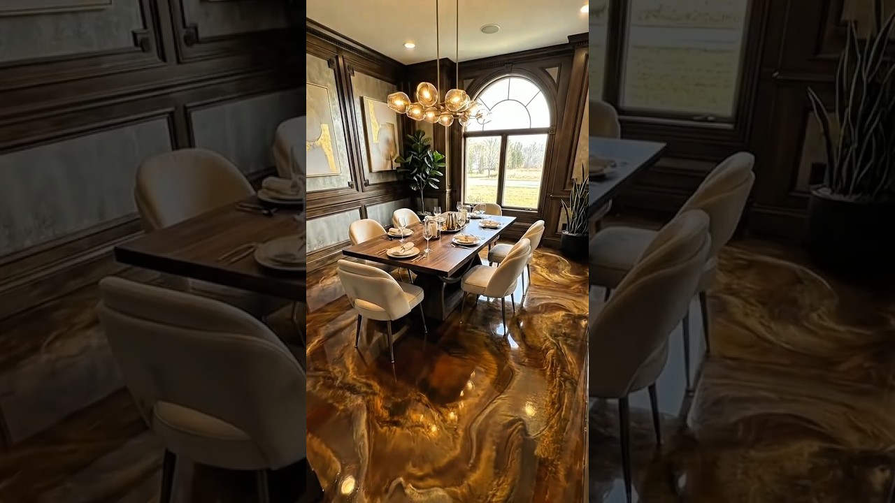 This Epoxy Floor Looks Like Lava Gold 😳 Dining Room Makeover #shorts #epoxyfloor