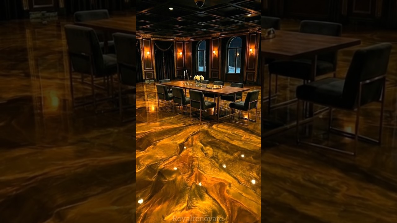 Luxury Dining Hall Transformation with Metallic Epoxy Floor ✨#epoxyfloor #youtubshorts
