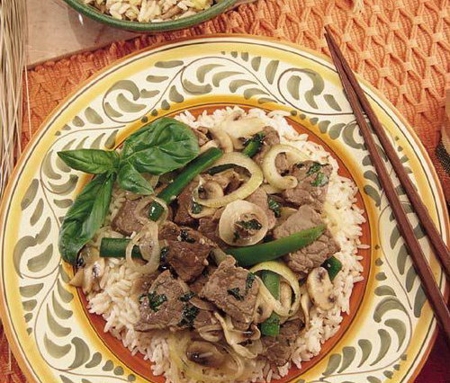 Thai cooks usually use holy basil in this quick and easy dish, which originated hundreds of years ago. Sweet basil is easier to find in the United States and is a good substitute. Chicken or shrimp can be used instead of beef. This salad is spicy, with tender meat and crunchy vegetables.