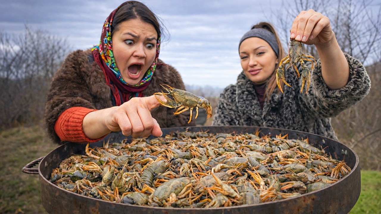 In this video, we’re cooking on a big scale. We brought home a huge fresh bighead carp and a lot of live crayfish. The crayfish are boiled together with octopus, while the fish is cleaned, cut, and roasted in the tandoor with vegetables until golden and crispy. Just imagine the incredible aroma we had at the table!